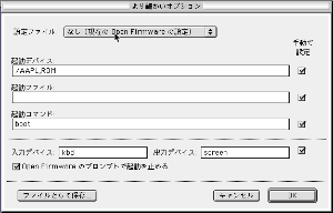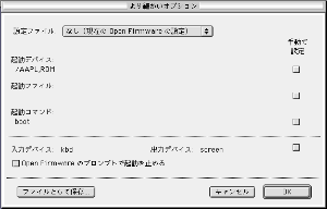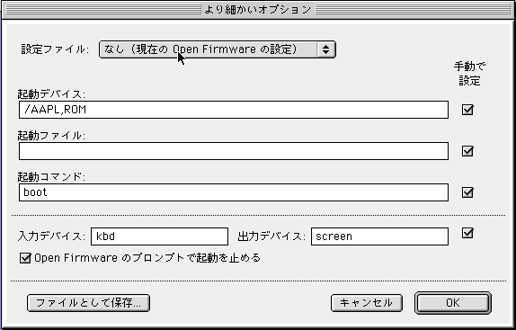 左下の「Open Firmware のプロンプトで起動を止める」 の三点だけがとても重要です。