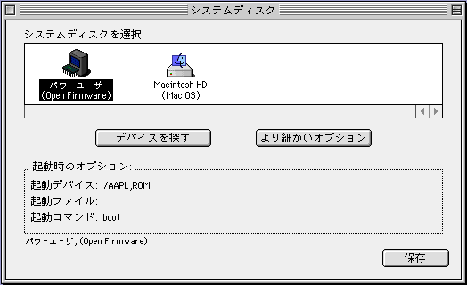 MacOS 8, MacOS 9 のコントロールパネルにある 「起動ディスク」 と何が違うかと言うと、 MacOS がなくても起動出来るような設定も出来るということです。