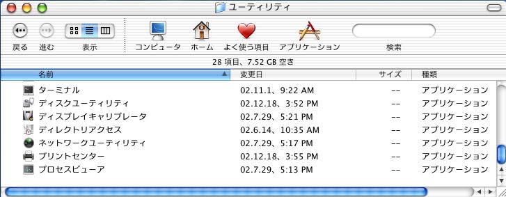アプリケーション → ユーティリティ